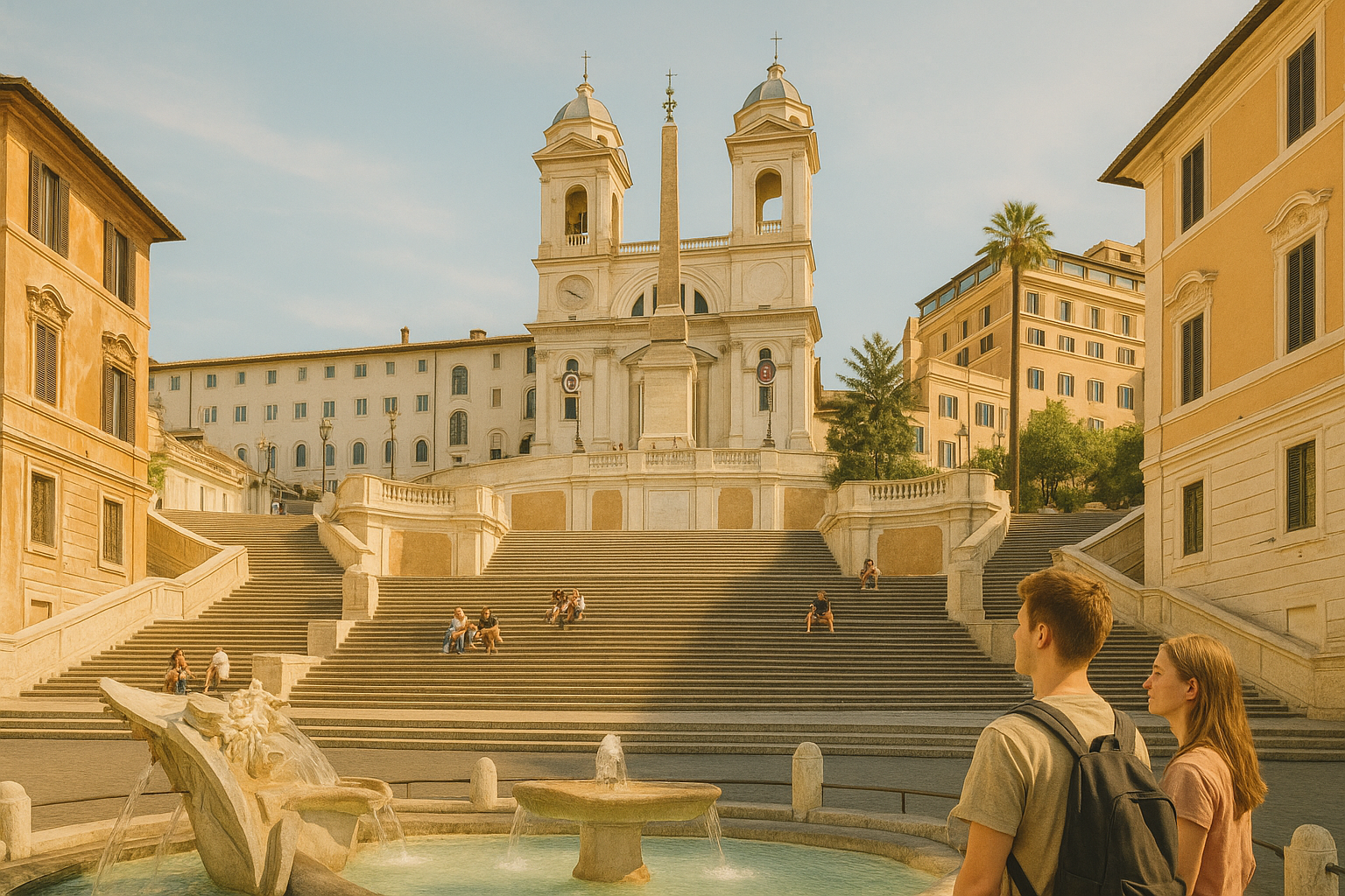 Start at your city-center lodging. Walk to the Spanish Steps and enjoy the view. Continue (10–15 min) to the Trevi Fountain — toss a coin. Stroll to the Pantheon and linger in Piazza della Rotonda.